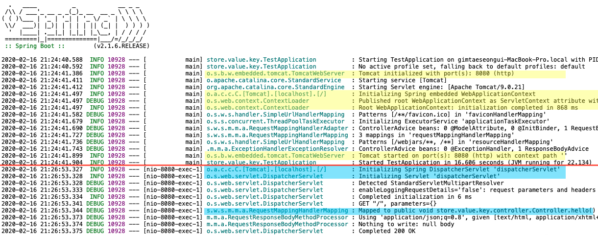 (Spring Boot์์๋ @SpringBootApplication ์ด๋ผ๋ ์ด๋ ธํ ์ด์ ์ผ๋ก web.xml ํ์ผ์ ๋์ฒดํ ์ ์์ต๋๋ค.)