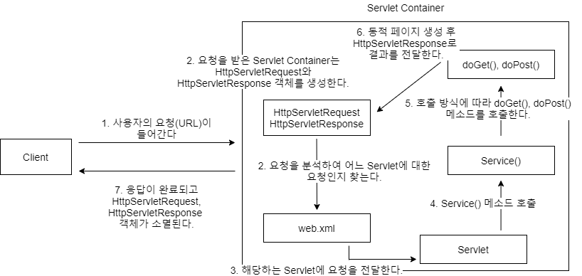 - ๋์ Web server -> Servlet container๋ก ์ ๋ฌ